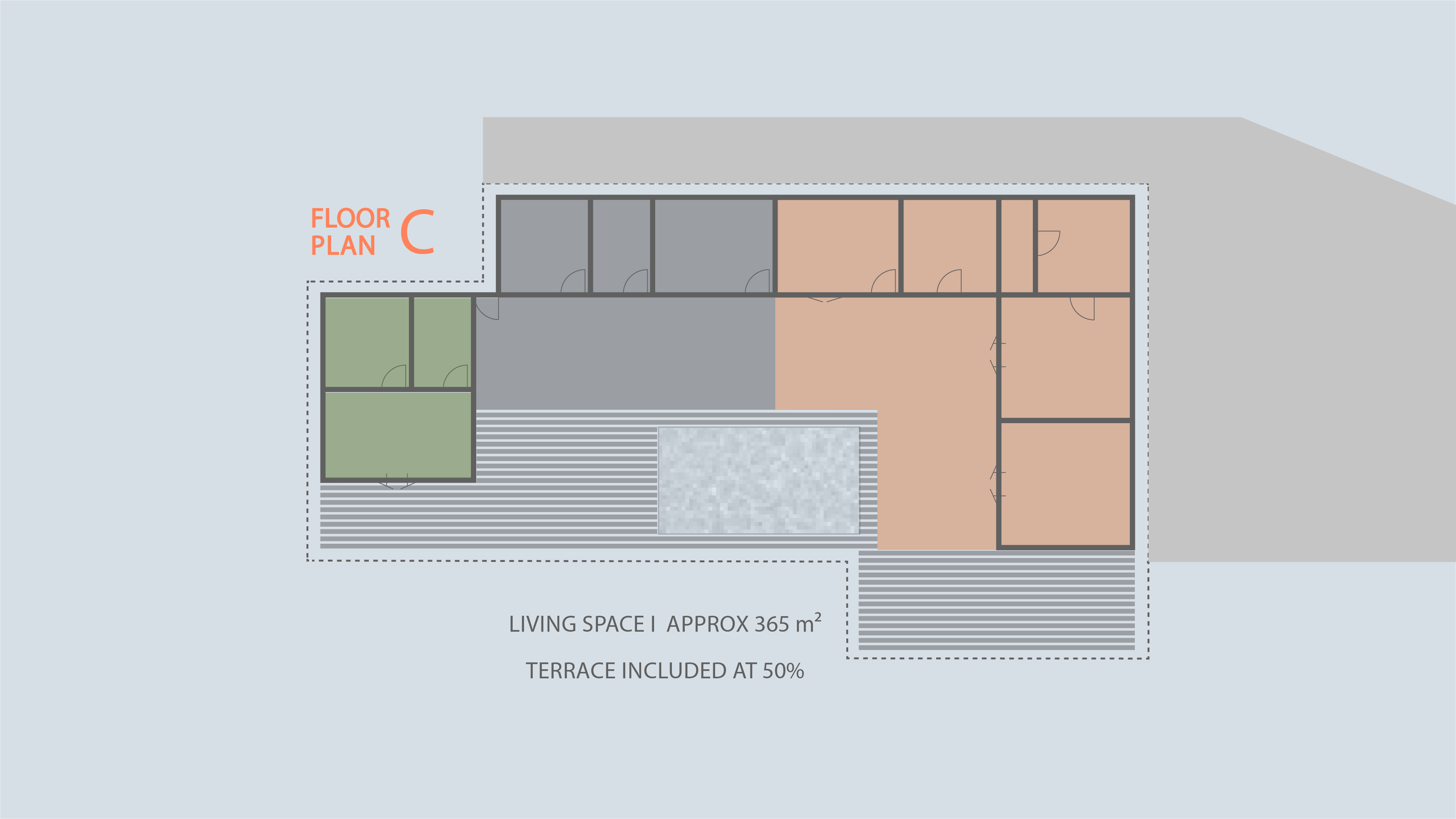 In dem Film und der Animationen gibt es eine neue Glaswand zum Pool und neue Oberflächen innen und außen, oder wünschen Sie mehr? Mit diesem Sanierungskonzept stehen ca. 350m² Mietfläche (inkl. Terrassen zu 50%) für den neuen Eigentümer zur Verfügung.